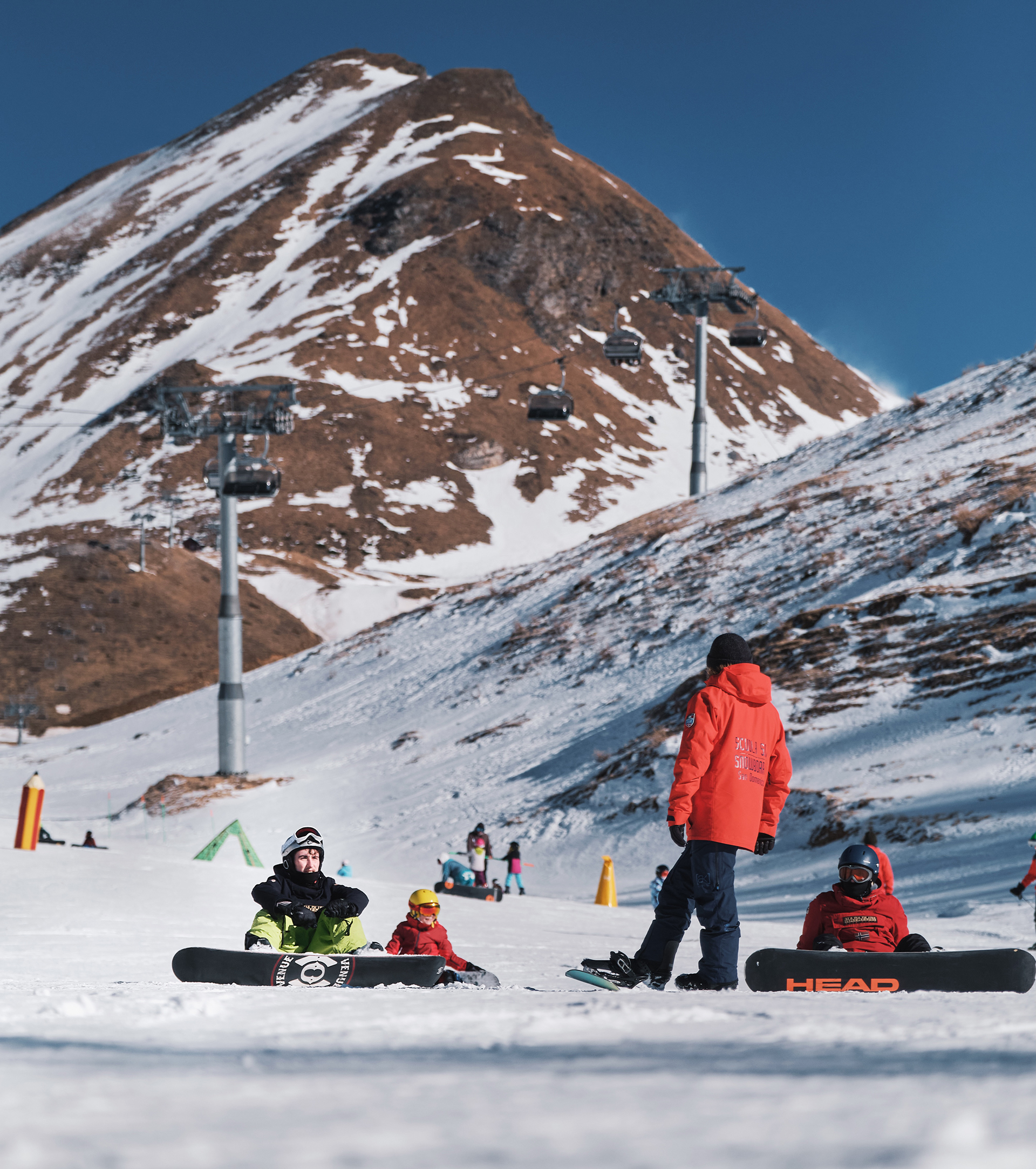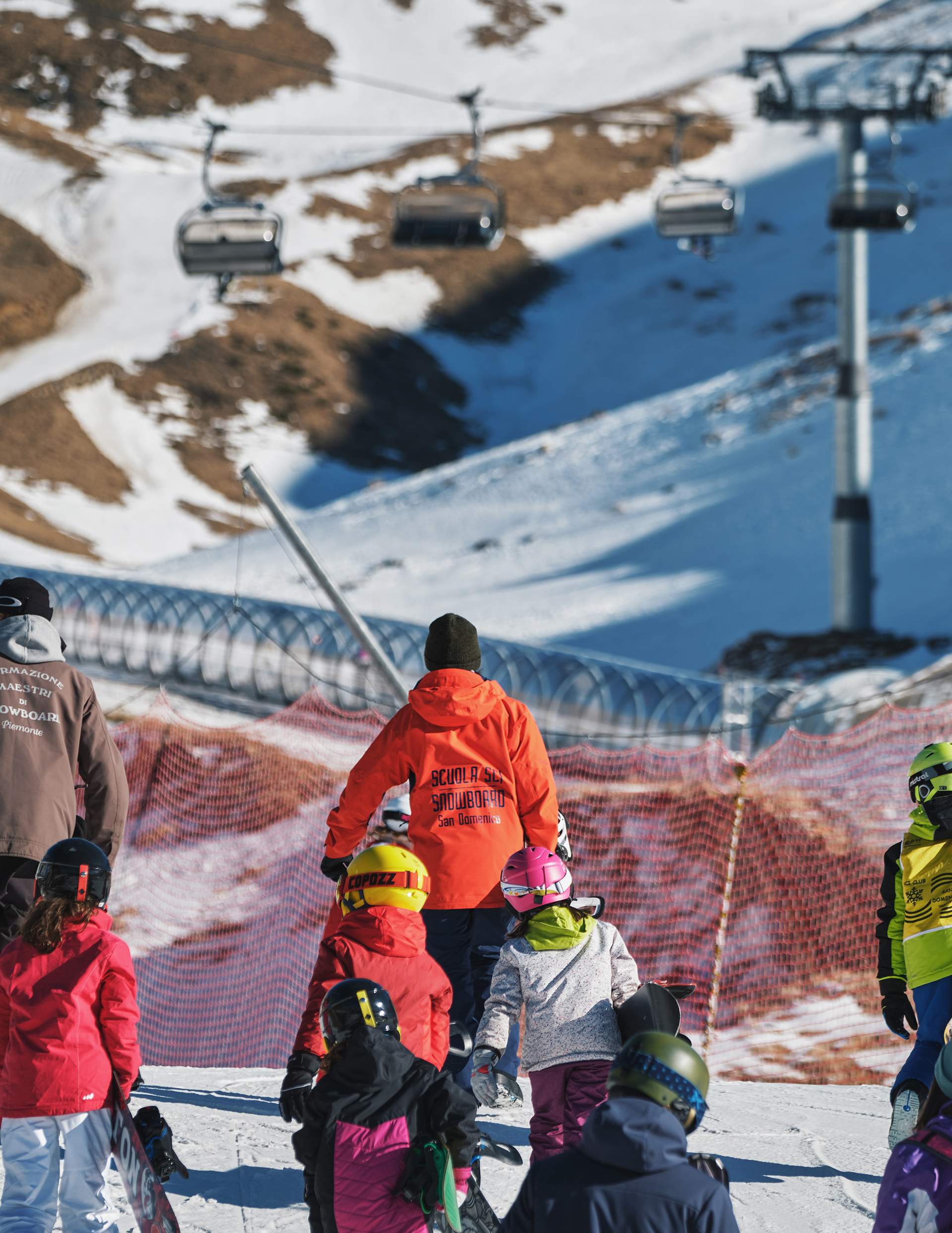 The meeting point is 15 minutes before the scheduled lesson time, at the ski school office located in front of Rifugio 2000, at the top station of the new gondola lift coming up from the village.